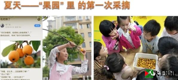 實(shí)用性添加。根據(jù)一年四季綠植的生長(zhǎng)特點(diǎn),努力實(shí)現(xiàn)四季都有特色綠植。我們種植了櫻花、海棠、紫藤、桂花、凌霄,還有梨樹、桃樹、枇杷樹、柚子等,為幼兒的探究性學(xué)習(xí)和主題課程實(shí)施提供支持。2019年的春天,園區(qū)猶如第一次穿上了春天的衣裳,孩子給不同的樹畫名片,在樹下寫生,留下春天的美景。