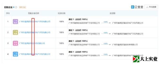這次拍地的恒大子公司,全名是廣州市番禺區(qū)裕垚房地產(chǎn)開發(fā)有限公司,如果查詢這家公司的控股企業(yè),會看到這樣的信息: